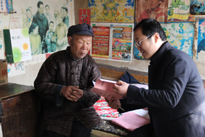 全体组工干部带上《潼关县惠民政策摘编》、《致全县干部群众的一封慰问信》等宣传资料,穿行于农家院落,奔走在田间地头,向广大群众拜晚年,送祝福,拉家常,讲政策,宣传党的群众路线教育实践活动取得的成效,宣讲我县2014年经济社会发展的成果及2015年工作思路,听取群众的所盼、所愿、所想,并不时在登记表上记录下群众反映的意见建议和生产生活中存在的困难和问题。
