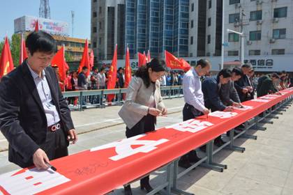 在“五四”青年节来临之际,为推进我县争创省级文明县城工作,充分展示广大青年、干部、职工学文明、讲文明、比文明的精神风貌,增强争创省级文明县城的凝聚力和向心力, 4月27日上午,潼关团县委联合县创建办、县文明办在祥和广场举行了“庆五四•讲文明•树新风•争创省级文明县城”拔河比赛暨宣誓大会。