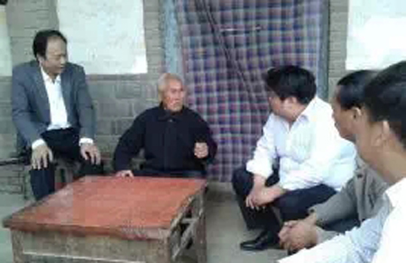 场景二:88岁的陶生春老人,参加过抗美援朝上甘岭战役,立过三等军功。陶爷爷从柜子里小心翼翼的拿出当年部队颁发的军功章和喜报,为王局长、和秦东镇长一一展示。大家与陶爷爷聊起当年战斗情景时,爷爷高兴地说道“我是炮兵出身,打仗一点都不怕。现在在电影上看到有打仗的画面就激动的很”。话语中充满了自豪感,干部们和陶爷爷聊得高兴,称赞他是大功臣,寺角营的“宝”,每月都有补助金的陶爷爷对现在的幸福生活很满意啦!