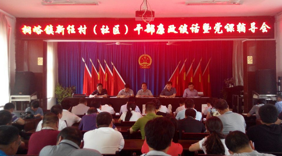 5月25日下午,桐峪镇在机关会议室召开新任村(社区)干部廉政谈话暨党课辅导会。桐峪镇党委书记杨宏亮、镇长王江涛、镇纪委书记刘中屏、全体机关干部及新当选的各村(社区)三委会委员、第一书记、党建指导员等参加会议。镇长王江涛主持会议。