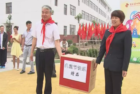 同学们为樊正学一行佩戴了鲜艳的红领巾,表演了丰富多彩的文艺节目,一起度过了欢快的“六一”儿童节。