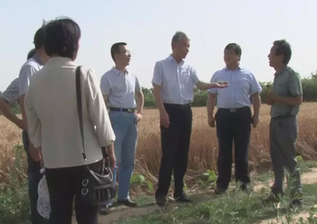 南巡村有我县农技推广中心创新传统农业发展模式,以“托管”形式重点培育的粮食高产创建示范田。在副县长李建军的陪同下,樊正学来到田间地头,看到两台联合收割机正在紧锣密鼓开展机收作业,又听群众高兴地说:通过托管,今年小麦长势好,产量高,樊正学也很高兴。