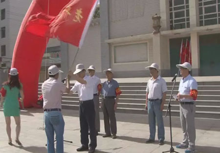 日前,由县委老干局、县离退休干部党工委的90余名离退休老干部组成的银发服务队在祥和广场正式启动,县委常委、组织部部长张锋为银发服务队授旗。